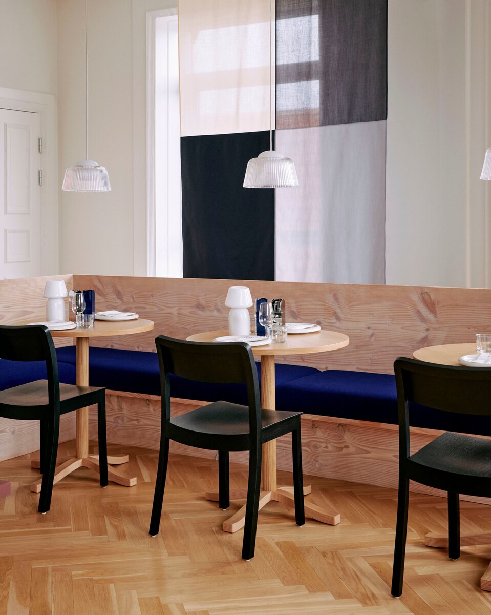 The Brim Pendant Lamp by HAY features a fluted pressed glass shade that enhances light diffusion. Designed by Naoto Fukasawa, its compact size makes it ideal for hanging in clusters or individually in smaller spaces.