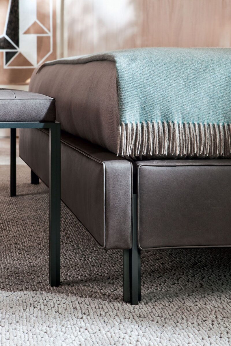 The Double Upholstered Bed by Molteni&C offers a modern frame with plush backrest. Upholstered in neutral fabric and available with wood or metal base.